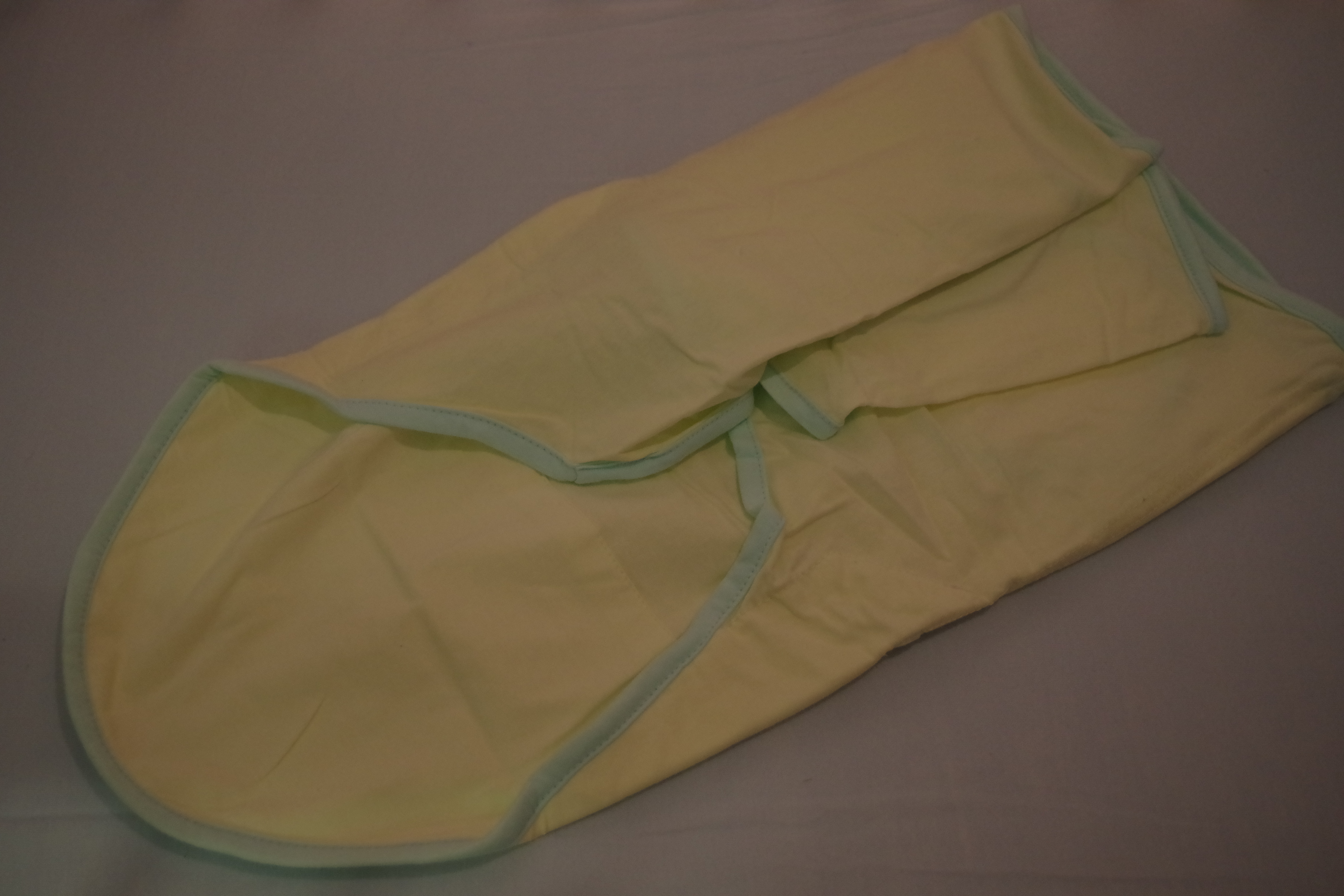 Magamiseks meil jätkuvalt mingit tekki voodisse beebile muretsetud pole, aga katsetamise mõttes ostsin ühe mähkimisteki, kuhu beebi siis magamise ajaks või ka mõne beebi puhul toitmise ajaks tihedalt sisse mähitakse (USAs on need eriti popid, Eestis vist see võte väga levinud tänapäeval pole). Samas proovida võib, sest nii mõnegi rahutuma magaja puhul on sellest mähkimisest kasu ja laps ei vehi end läbi une näiteks kätega üles. Antud mudel maksis 20€, oleks saanud ka autode ja laevadega variandi osta, aga see kollane tundus kuidagi neutraalsem ja mõnusam.