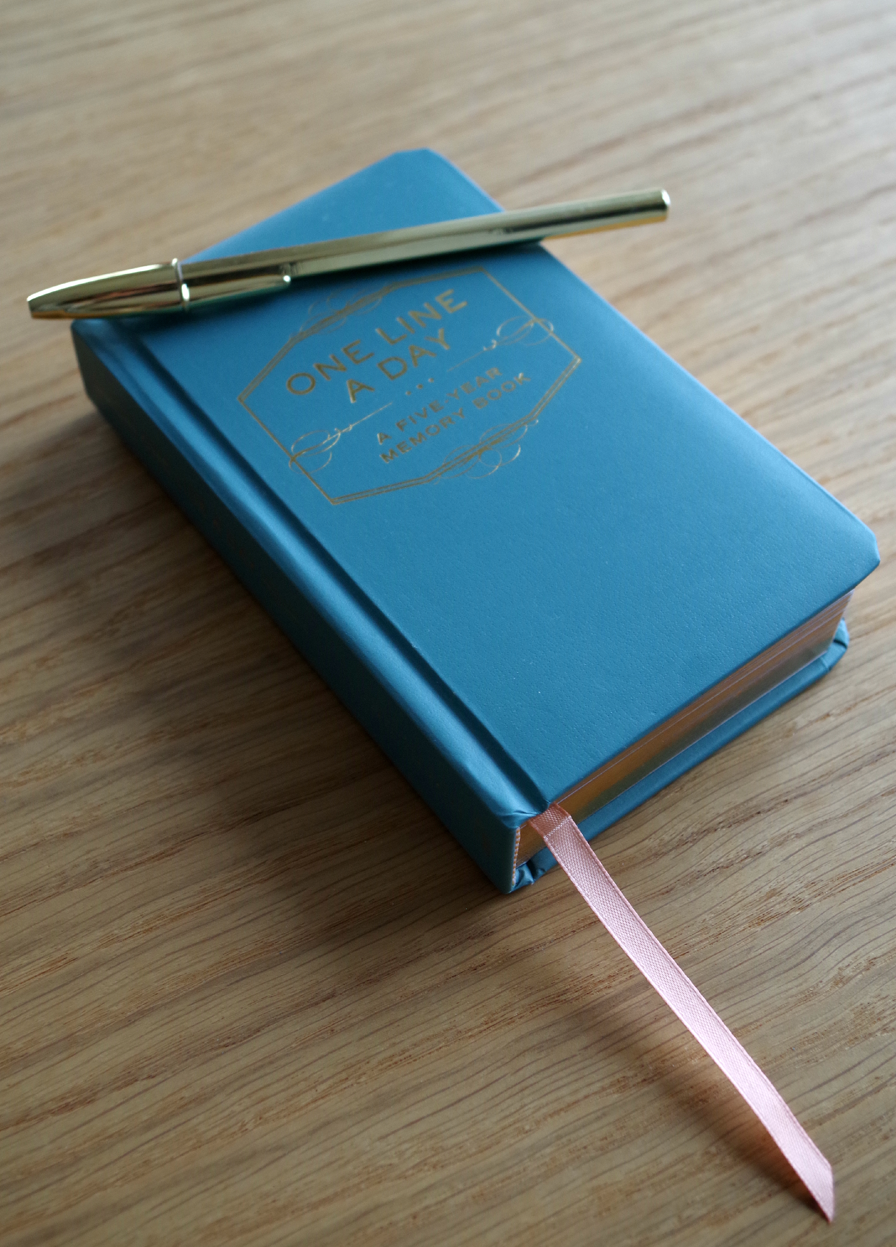 Ühel päeval raamatupoes see idee mind tabaski. Leidsin “One line a day” märkmikud. Esimesena jäi muidugi silma ilus roosa ja väikse kuldse kiikhobuga nö emmede eri, aga kuna ma tahaks selle märkmiku kunagi Jensile kinkida (ehk oleks tal põnev lugeda), siis see roosa mulle nii väga ei meeldinud. Õnneks oli sealsamas kõrval ka sinine variant (märkmiku teeb imeilusaks lehekülgede kuldne ääristus, mis lausa kutsub sinna kirjutama), mis polnud emmedele suunatud, aga mis meie igapäevaste tegemiste jaoks vaat, et pareminigi sobib.