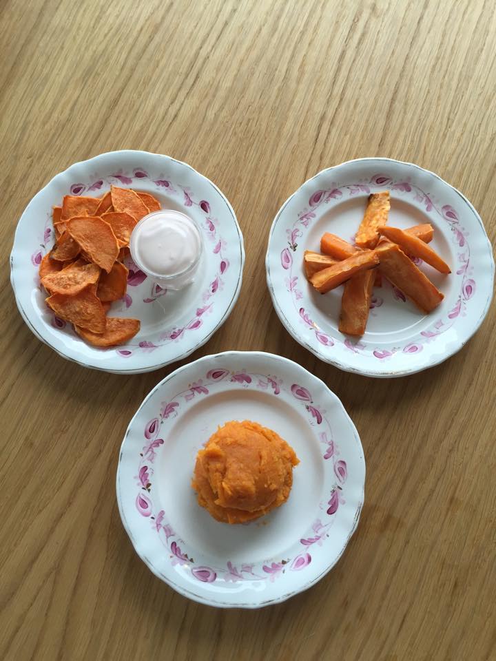 JJ on väga hea meelega söönud Good Gouti bataadipüreed (muideks, septembrini on Prismades need GG püreed allahindlusega), nüüd mõtlesin, et teeks siis ise ka bataadist midagi. Kuna meie ostetud bataat oli üsna suur, siis otsustasin, et proovin seda teha kolme moodi.