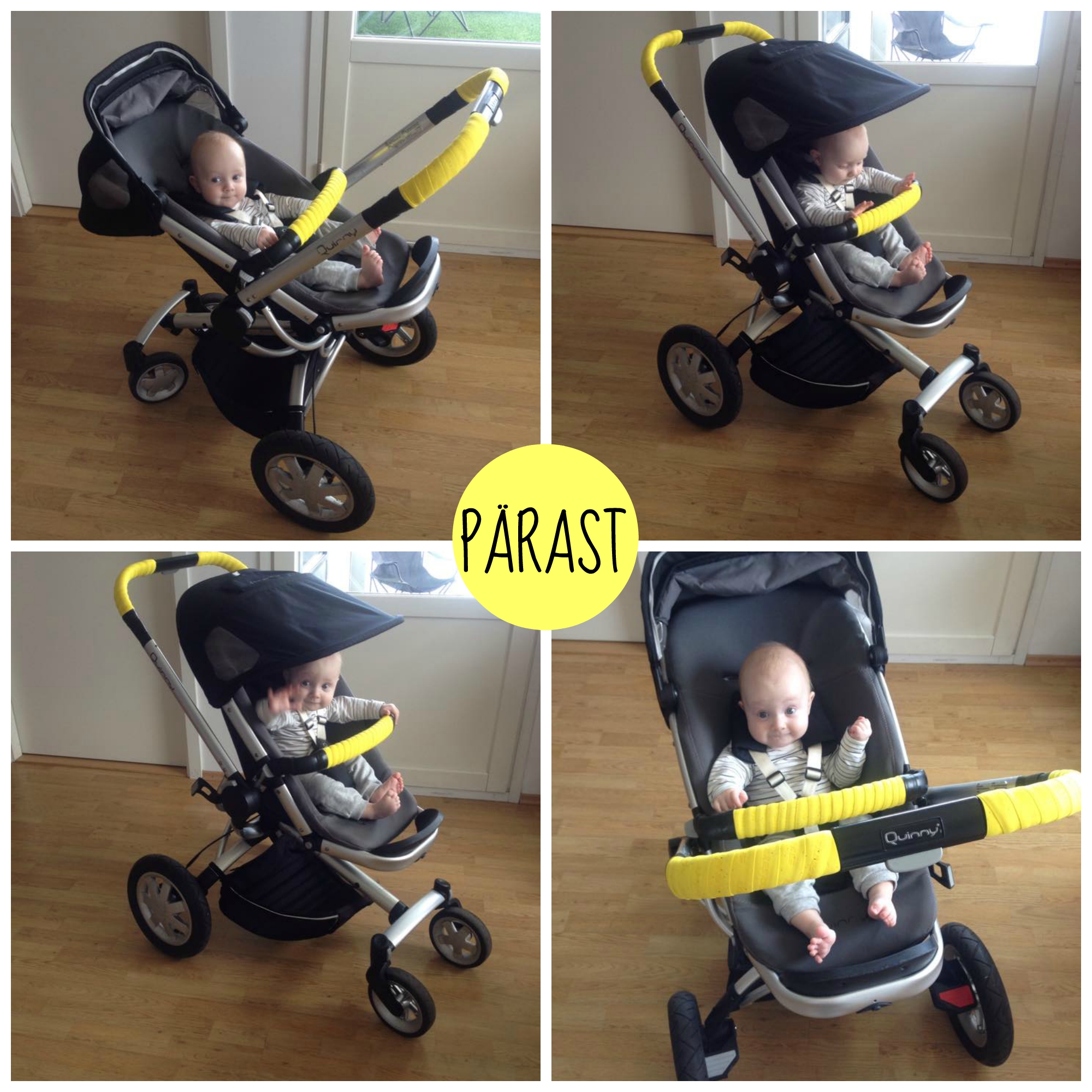 Vahelduse mõttes proovisime ka Quinny Buzzi (mis tänaseks on küll müüdud). Enim tõmbas mind selle käru poole tore iste, kus JJ-l välja vaadata väga mõnna. Ka toetas see iste teda hästi, kuna ta veel päris ise ei istu. Istet saab kasutada mõlemat pidi. Näoga sõidu suunas on 3 kalde asendit, seljaga sõidu suunas on 2 asendit.