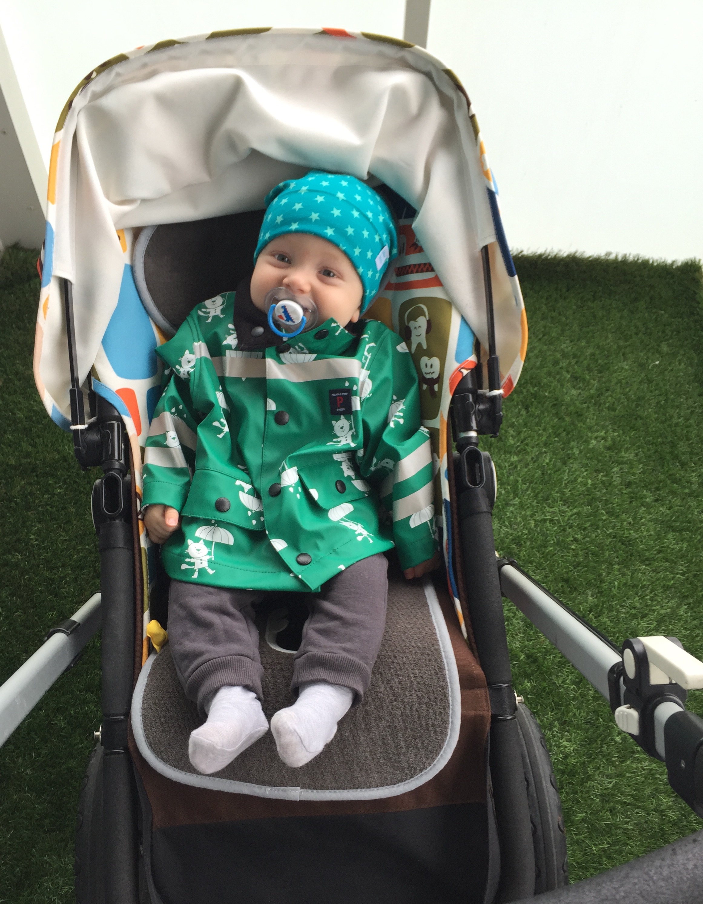 Jope ongi plaanis kasutusse võtta selliste vihmaste ilmade korral, kus tuleb ette näiteks käik arsti juurde, massaaži või poodi ja ei taha kombekat selga panna. Ka on see mugav toast autosse minekuks, sest seda on oluliselt lihtsam pikemaks sõiduks seljast ära võtta kui kombekat. JJ sügisesest kombeka komplektist kirjutasin siin.