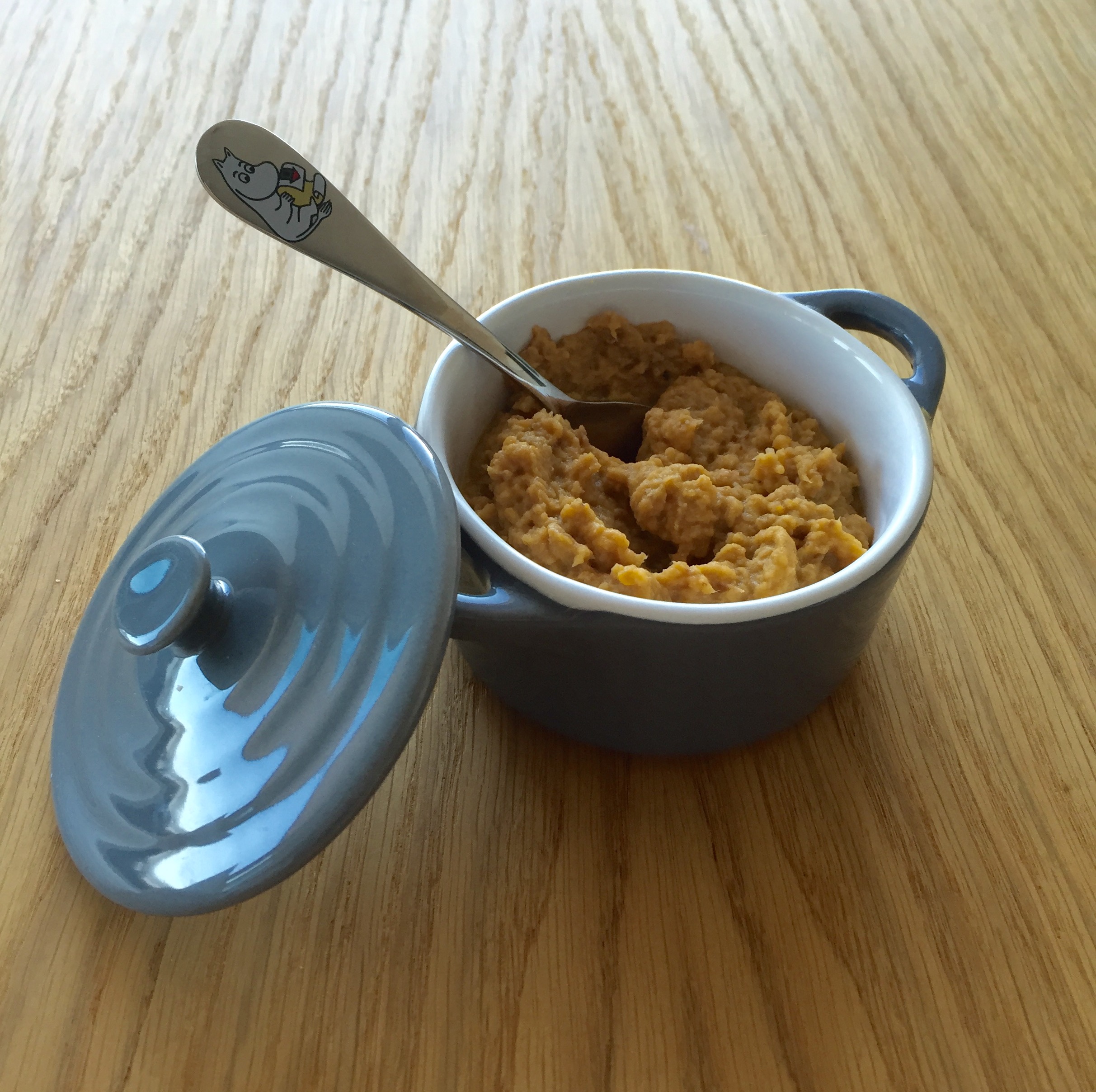 Beebile mõeldud osa võid püreestada saumiksriga ja siis veidi jahutatult serveerida või kui laps on juba harjunud tükilisema toiduga, siis piisab ka kahvliga purustamisest (kuigi liha sellega väga ei purusta ja see eeldaks lapsel hammaste olemasolu 🙂 ).