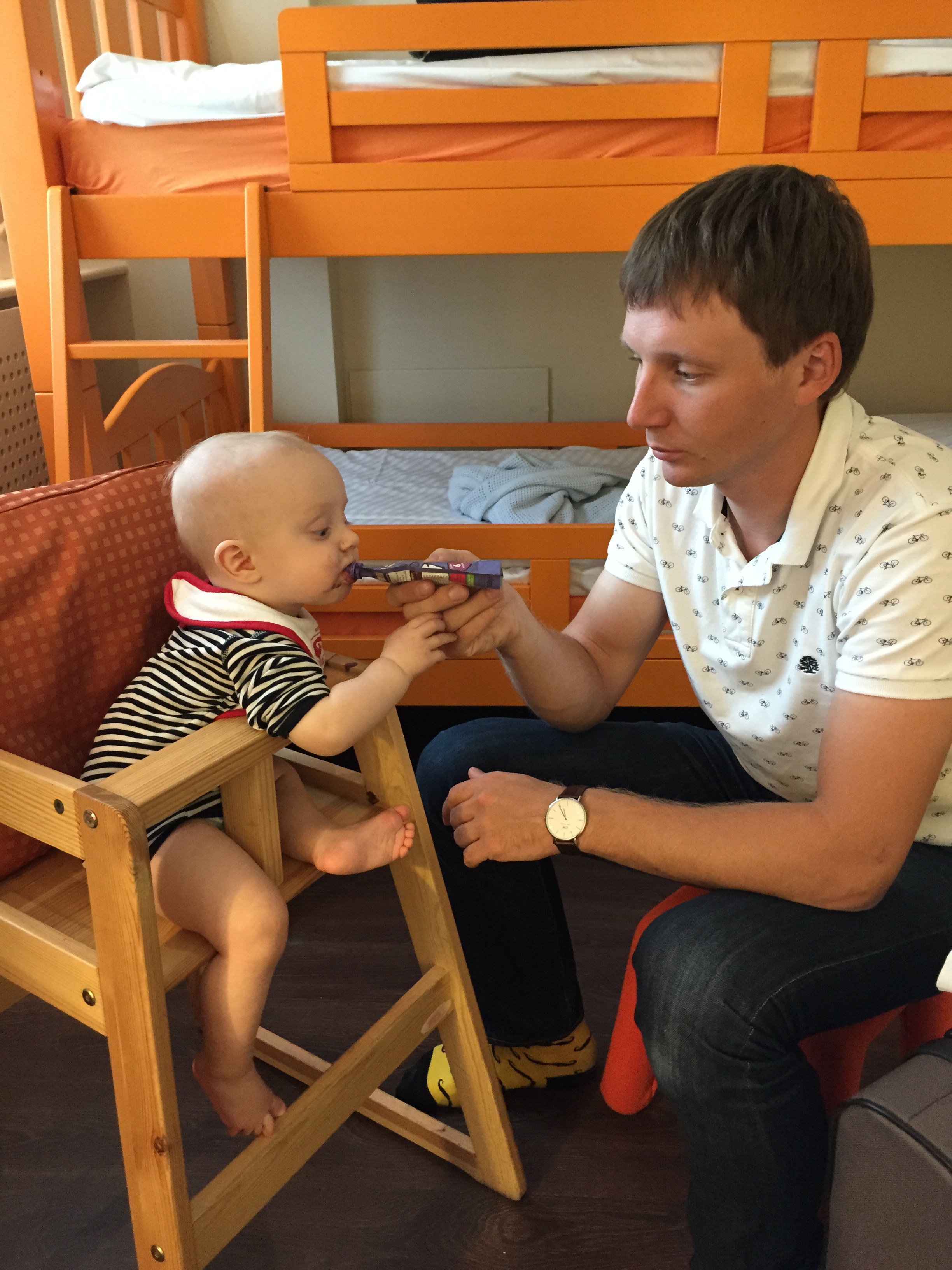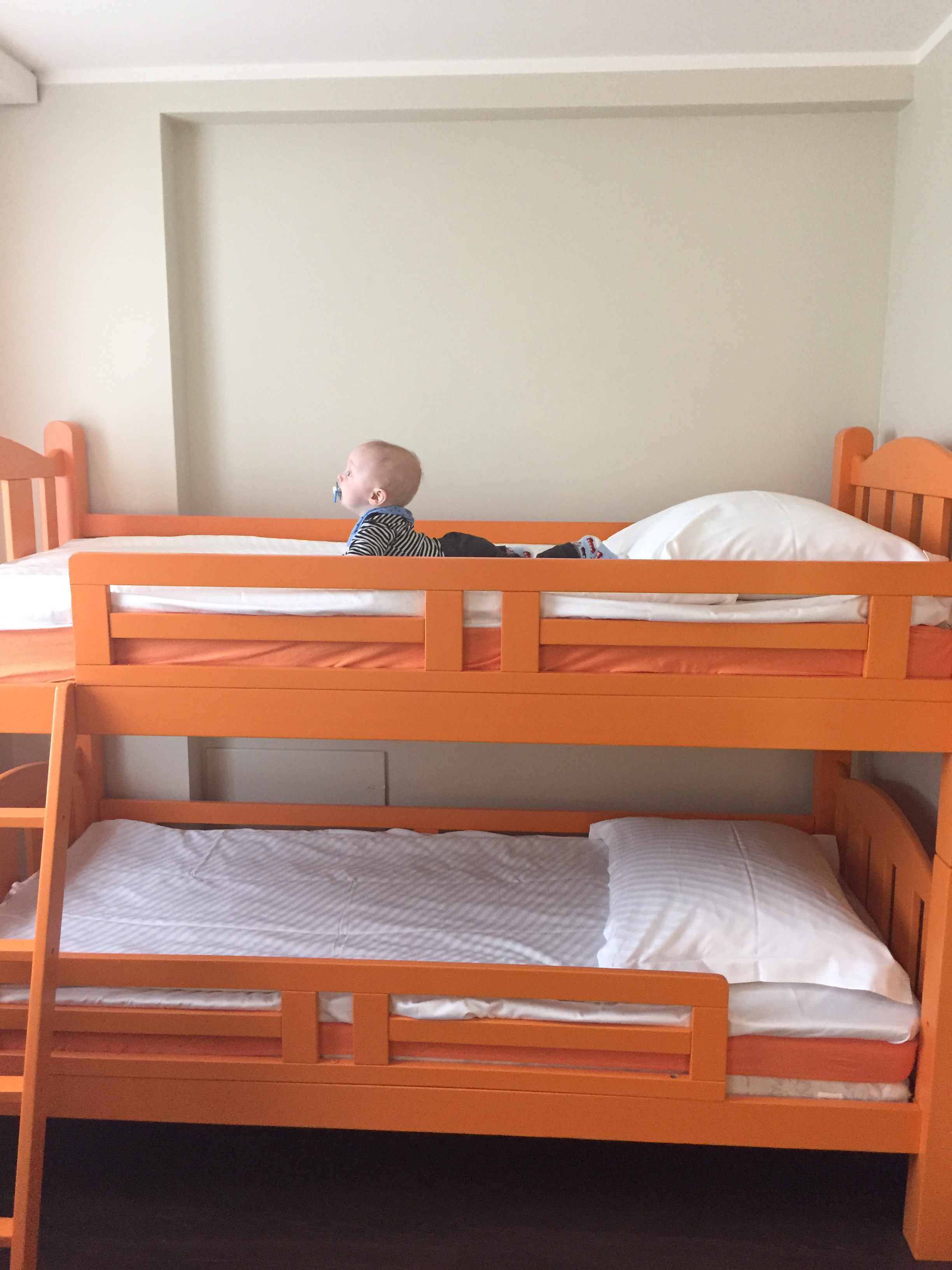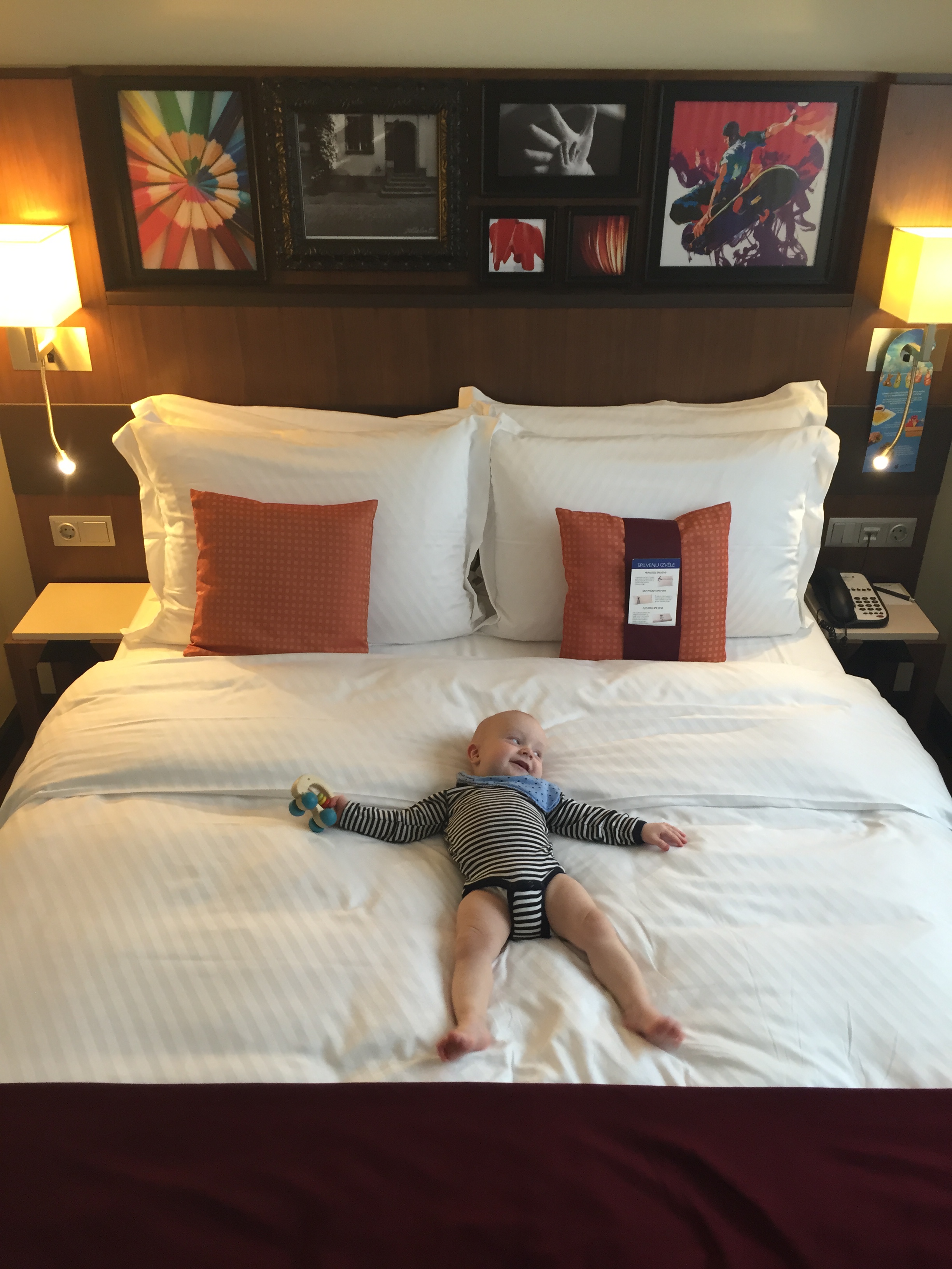Ööbisime Radisson Blu hotellis (peretoas), tuba oli kena, puhas ja suht ruumikas. Veidi suuremate lastega perele ideaalne, kuna lisaks kaheinimese voodile oli toas ka nari lastele (Jens siiski magas kaisus meil, nari jaoks veel vara) ja ka väiksed toolid ja lauake, kus joonistada või mängida. Küsisime oma tuppa ka söögitooli, mis ülikiiresti meile toodi ja nii oli mõnus JJ-d ka toas toita. (EDIT söögitool toodi meile ka iga kord hommikusöögile minnes lauda 🙂 )