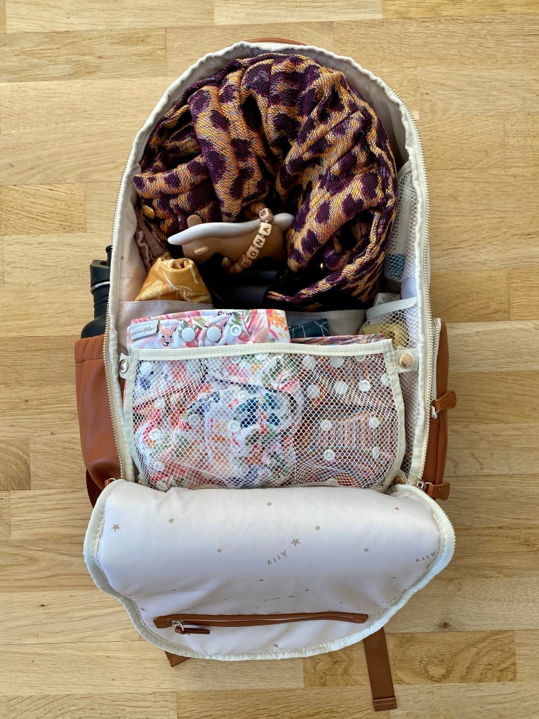 Aga natuke siis ka funktsionaalusest ehk mida ja kuidas see kott endasse mahutab. Suurde sahtlisse mahub meie põhiline kraam kenasti ära ja jääb ruumi ülegi – kui näiteks pikem käik ja vaja rohkem mähkmeid kaasa pakkida, siis mahub ka. Ühekordsete mähkmete kasutajatel on ruumi rohkemgi (aga ma siiski julgustan riidest mähkmeid kasutama ka kodust väljas käies 😉).