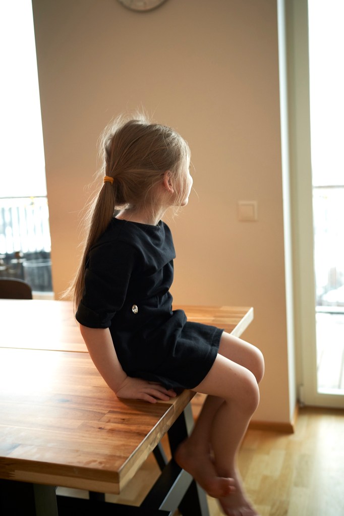 Jenni kleit lõi mind ennast küll lausa pahviks ja pani mõtlema, et tahaks omalegi sellist (ja no tänaseks on OM tiim sellegi mõtte teoks teinud ning samasuguse kleidi saab omale ka ema osta), aga arvestades Jenni printsessi faasi, siis ma ei olnud päris lõpuni kindel, et kas ta selle šiki väikse musta kleidi heaks kiidab. Aga siis astus Jenni ligi, märkas taskule kinnitatud “kalliskive-kristalle” ja asi oli otsustatud “emme, vaata, siin on ju Elsa jääkristallid!” – põhimõtteliselt oli uus lemmikkleit saabunud.