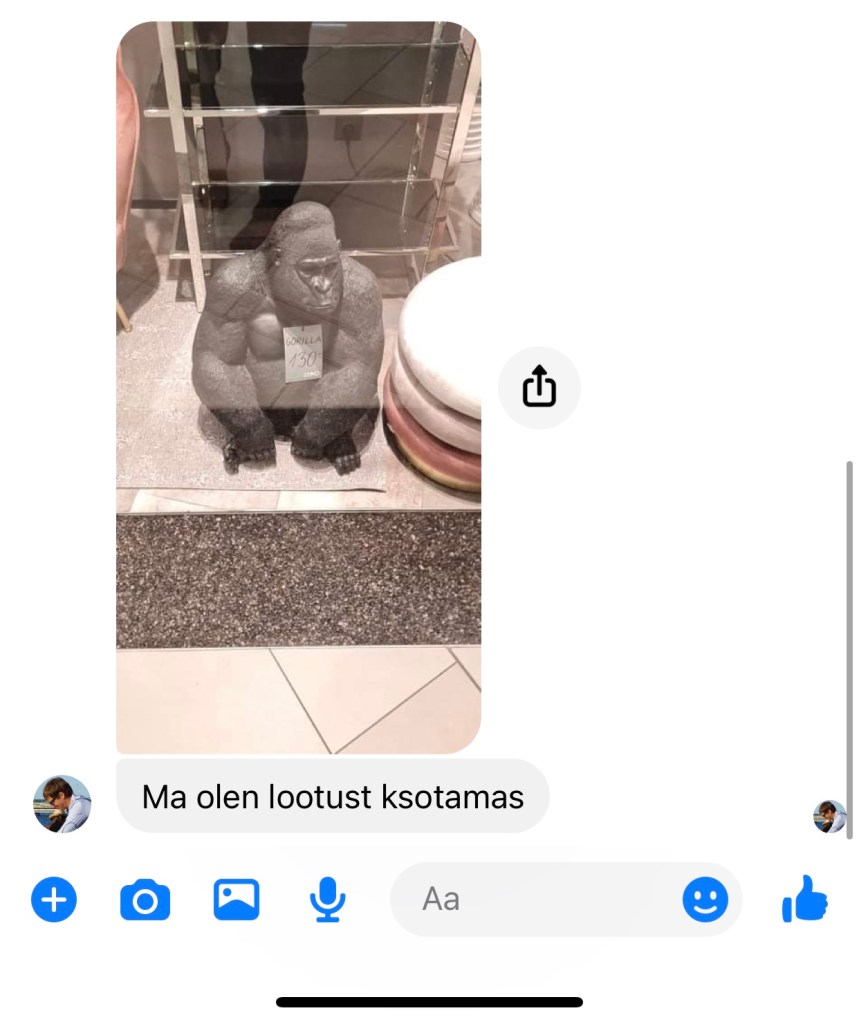 Laste kingitused olid kõik valmis ja ootel, aga oma otsustamatusega olime Teeduga enda kingid siiani ostmata jätnud. Igasuguseid mõtteid oli ja siis samas jälle mõtlesime, et aga pole ju tegelikult midagi vaja. Aga päris ilma kingitusteta oleks asi ehk lastele kahtlane tundunud ja nii läks siis Teet veel otsima seda “midagi”, mis meie kingiks passiks – saates mulle siis poest pilte nii õmblusmasinast (ärge küsige miks, sest ma päriselt oskan ainult nööpi ette õmmelda), varstolmuimejast (mida oleks isegi vaja, aga mida ma ei tahtnud esimest suvalist ettejuhtuvat osta) aga ka gorilla kujust 🤣🤣🤣 Ja kuna meil mõistlikke mõtteid ei tulnud, siis ostis ühe kogupere lauamängu, mis meid ühise kingina kuuse alla ootama läks.