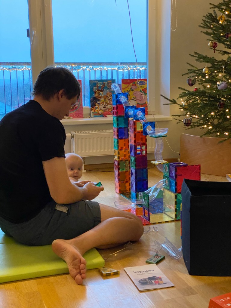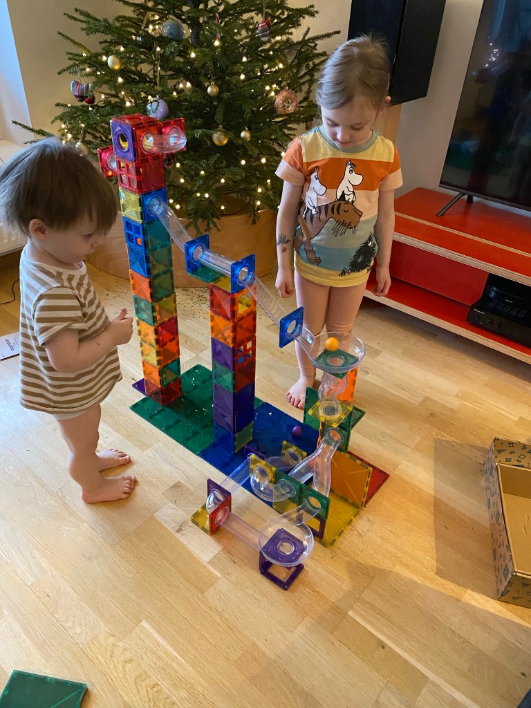 Järgnes suur kingimöll, mis kestis põhimõtteliselt terve päeva. Selles osas oli see hommikune kingituste jagamine küll suurepärane, et nad said oma uute asjadega tegeleda terve pika päeva, tavapärase napi õhtu asemel. Mulle tundus ka, et kõik olid oma kingitustega rahul, aga ühist tegevust ja rõõmu pakkus kõige enam ilmselt Connetix magnetite pallirada, see oli miski, mille juurde terve päeva kokku tuldi, et jälle ehitada ja palle veeretada – ma päriselt imestasin, et KUI palju rõõmu ja elevust see pallide korduv veeretamine neile pakub, poleks isegi uskunud, et nii palju.