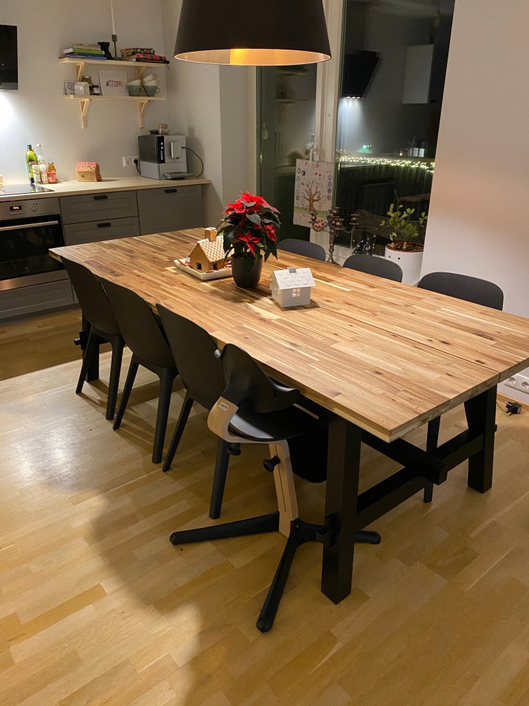Jõulude ootuses sai ka meie köök-söögituba-elutuba värskenduse uue söögilaua ja toolide näol. Lõpuks on meil nüüd selline laud, kuhu taha kogu pere mahub vaevata ja ruumikalt ühiselt istuma ja jääb ruumi ülegi – sest küll tulevad jälle need peod, kus külalised ka kohal eks.