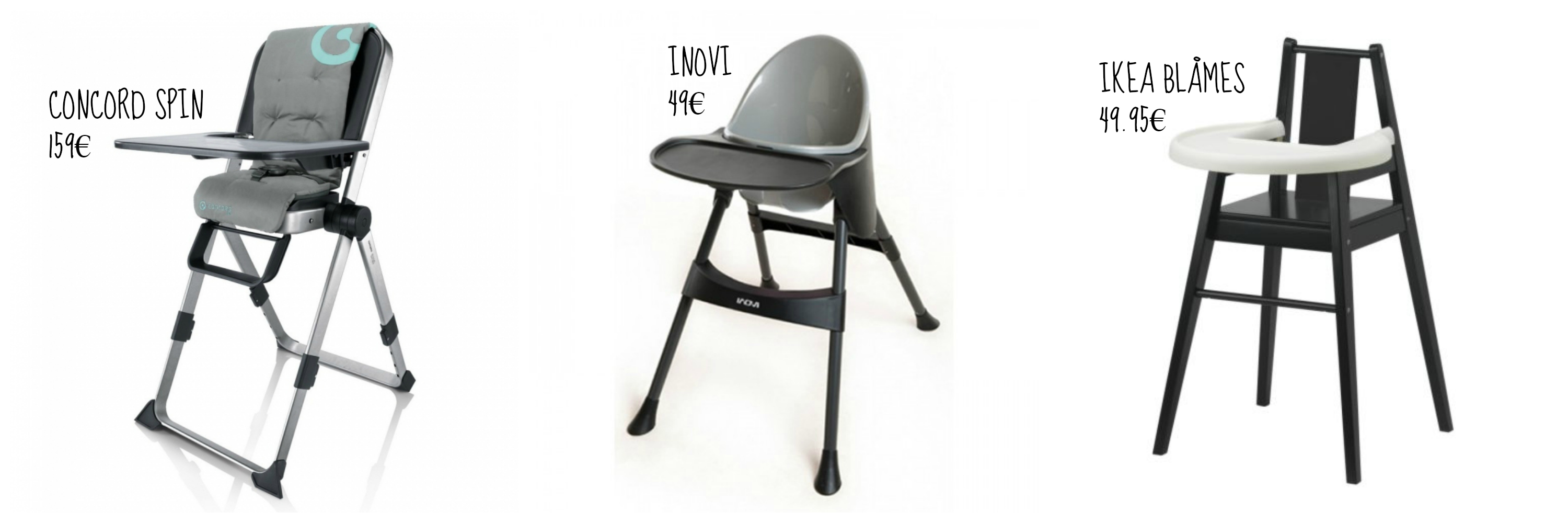 Üsna kenad ja tagasihoidliku välimusega toolid on näiteks need (Concord, Inovi, Ikea), Concordi puhul on hind krõbedam, kuna tool ise ka ilmselt teistest vastupidavam ja lisaks on see väga mugavalt väikseks kokku pakitav nii hoiustamiseks kui ka transpordiks. Sobib näiteks neile, kes tihedat liikumist kodu ja maakodu või vanavanemate vahet ja ei soovi mitut erinevat tooli soetada. Lisaks saab seda pärast beebiaega niisama toolina kasutada, kuna tooli kandevõime on uskumatult kuni 100kg!